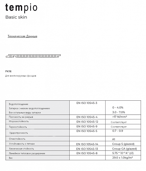 Керамическая плитка для вентилируемого фасада, система FKL-4/16, Tempio