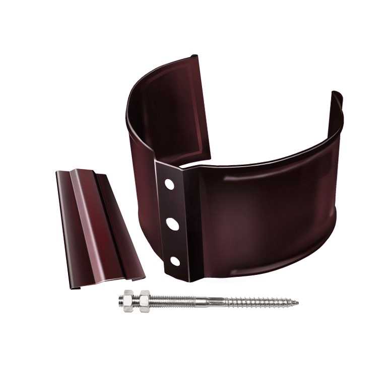 Хомут трубы металлический на камень Grand Line ПВХ бордо (RAL 3005)