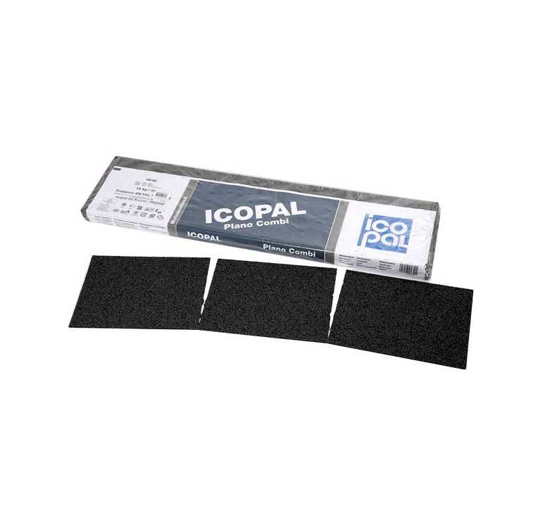 СБС-модифицированная битумная коньково-карнизная полоса, основа – стеклохолст 120 гр/м2, верхний слой – сланцевая посыпка, нижний слой – клеевой битум, покрытый защитной пленкой.