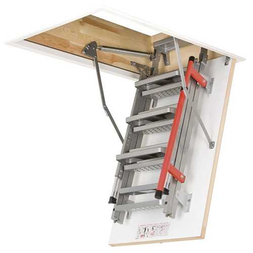 • Складная чердачная лестница позволяет сэкономить свободное пространство в доме. Она легко складывается и убирается для хранения в потолок, не занимает много места.
