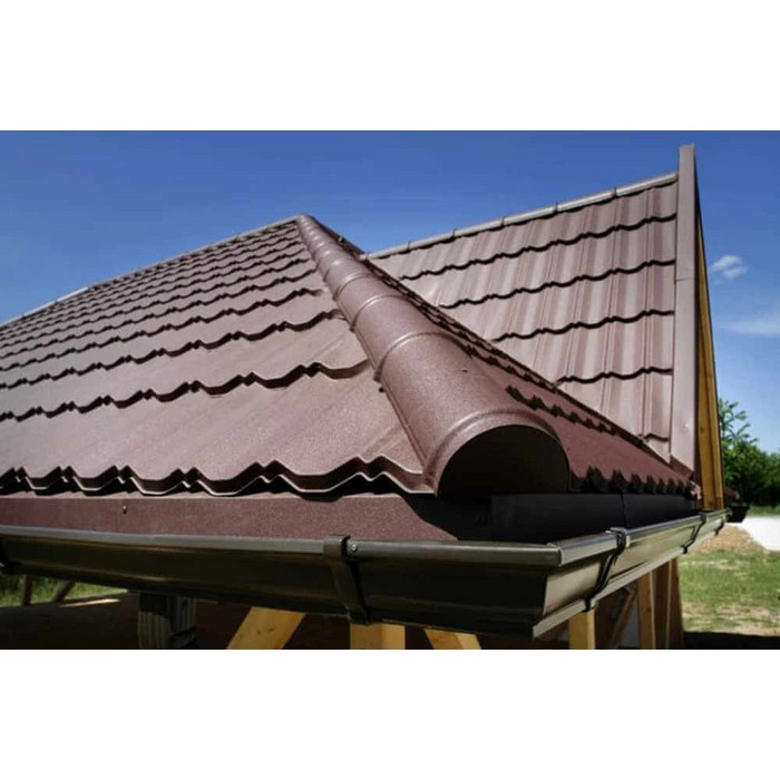 Толщина металлочерепицы может быть 0,4-0,5 мм. Толщина влияет на прочностные характеристики и на внешний вид кровли. Именно толщина металла определяет устойчивость к деформации и обеспечивает стабильность формы при механических нагрузках и температурных перепадах. Так, жесткость для стали толщиной 0,5 мм будет 100%, а для 0,4 мм толщины она составит уже почти 50%, то есть снизится вдвое.