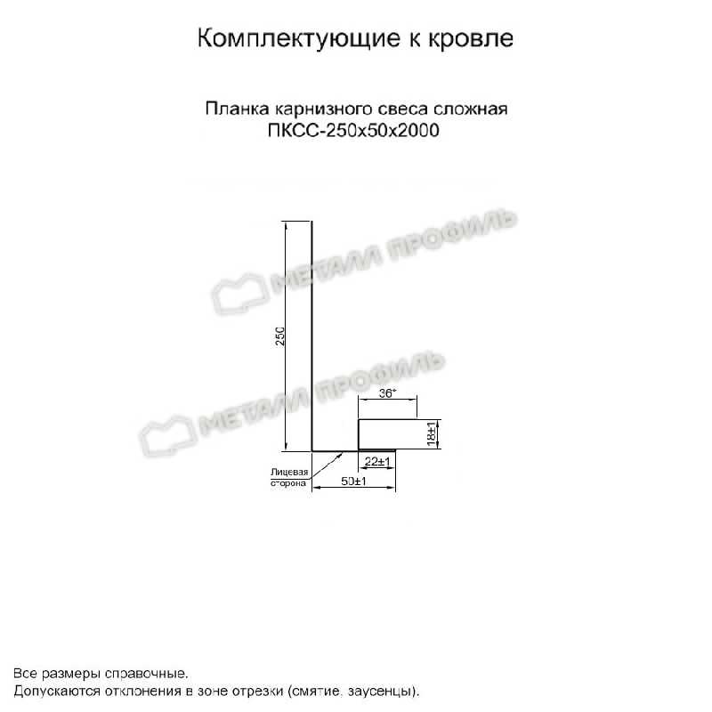 • Планка карнизного свеса сложная 250х50х2000 (ПЭ-01-1014-0.45) противостоит ржавчине.