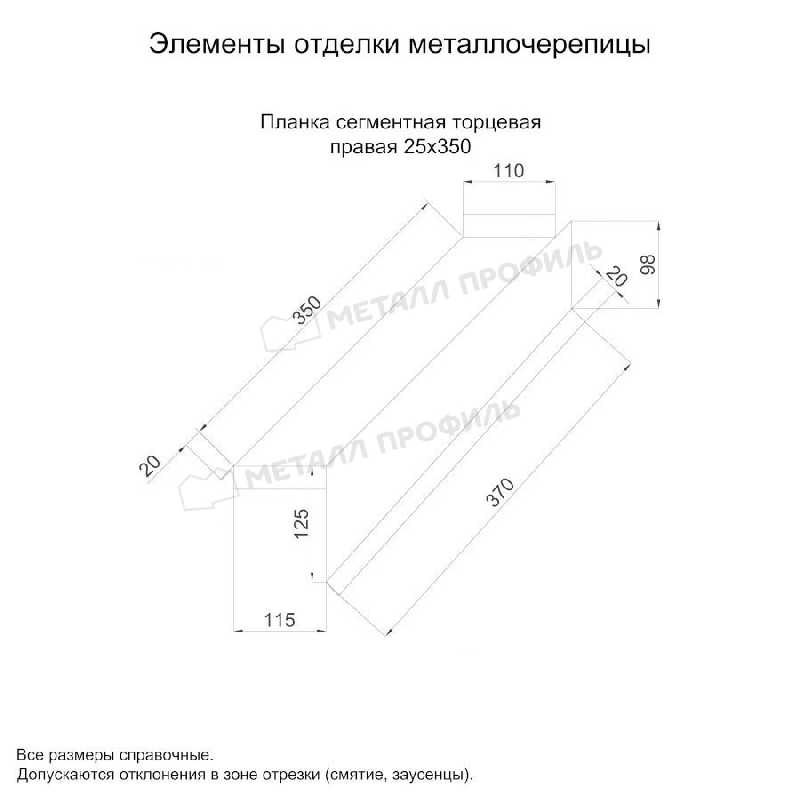 Планка сегментная торцевая правая 350 мм (PURMAN-20-RR32-0.5)