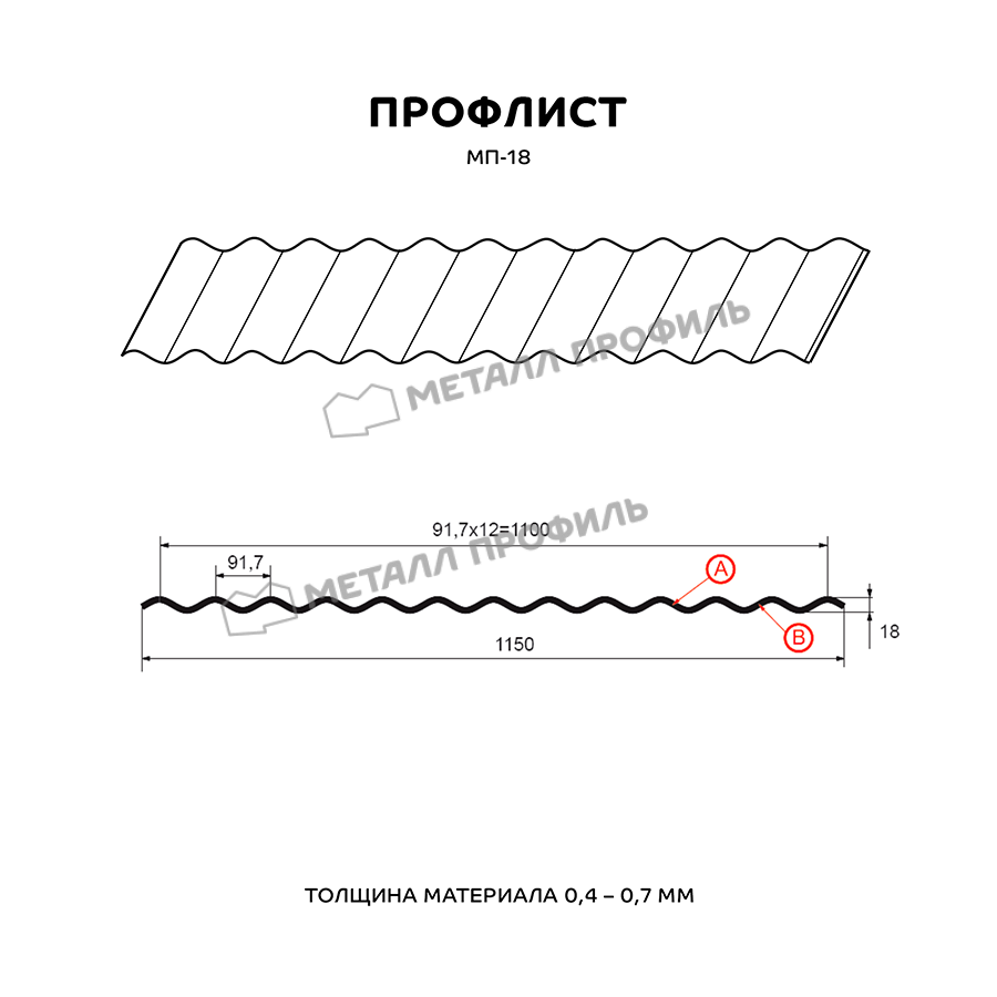 Профлист Металл Профиль МП-18 0,7 Полиэстер RAL 9003 Белый | A