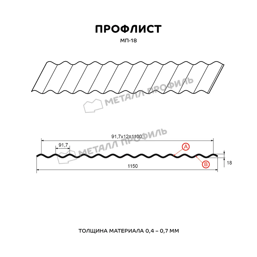 Профлист Металл Профиль МП-18 0,7 Цинк Бесцветный - это высококачественный строительный материал, предназначенный для использования в различных строительных проектах.