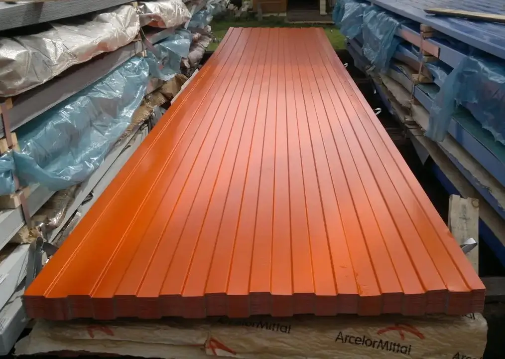 Профлист Металл Профиль МП-20 0,45 Полиэстер RAL 2004 Чистый оранжевый подходит для использования как на крышах, так и на стенах зданий.