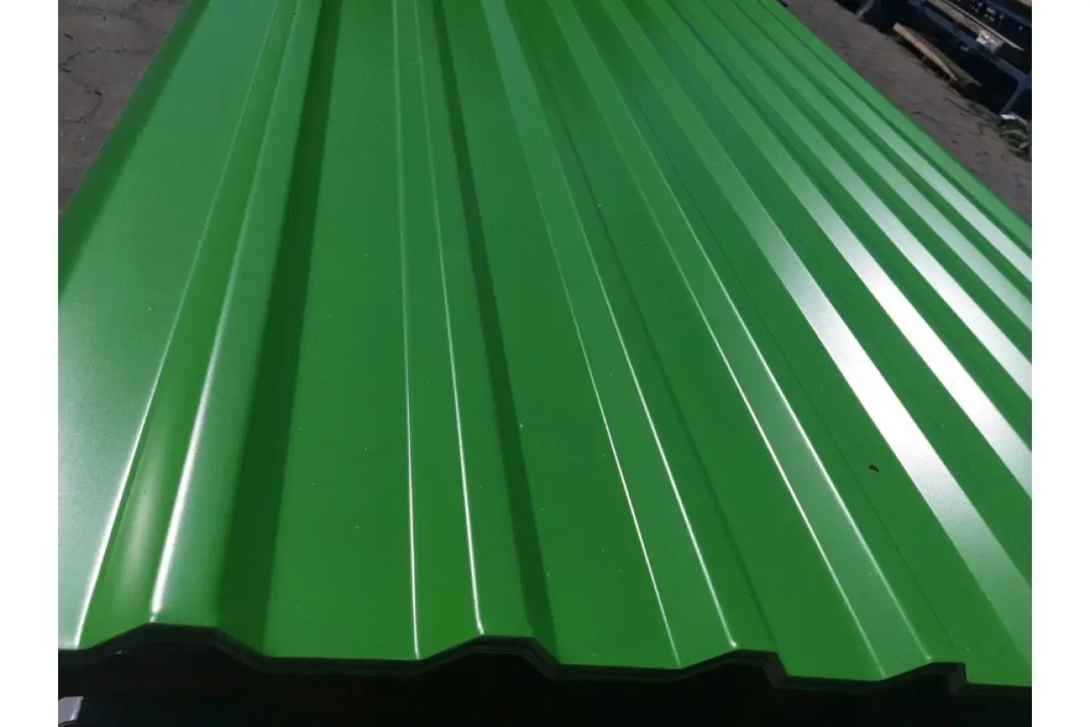 Цвет профлиста - светло-зеленый металлик, который придает ему стильный и современный вид. Он идеально подходит для использования на крышах, фасадах зданий, а также в качестве ограждений.