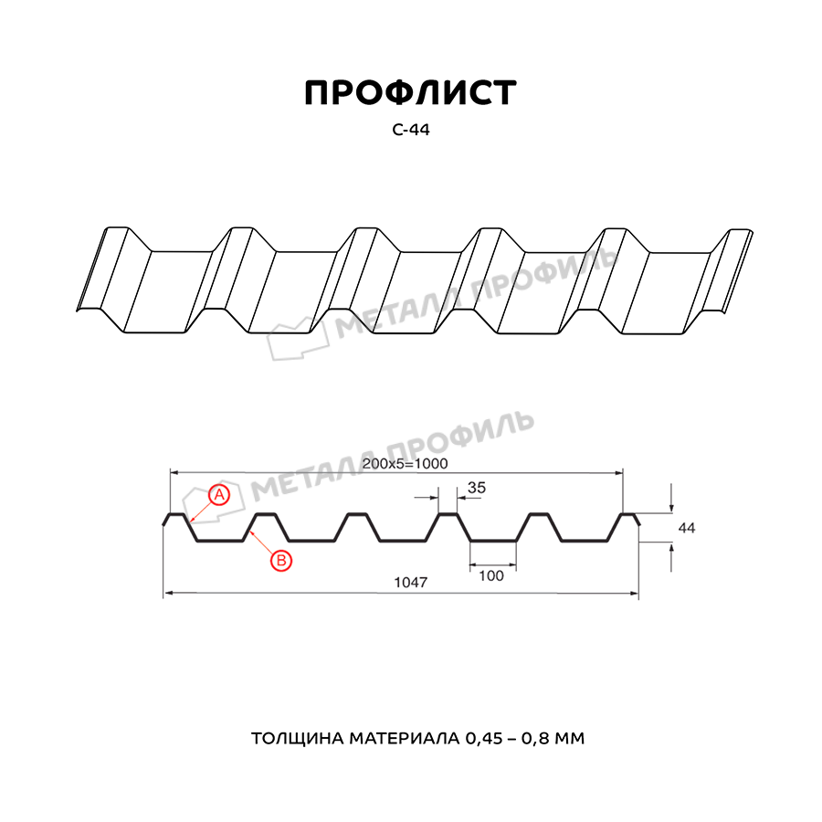 Профиль С-44 имеет оптимальные размеры и форму, что обеспечивает простоту монтажа и надежность конструкции.