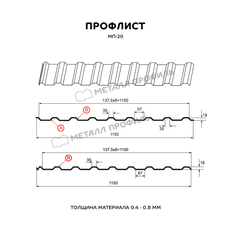 Профлист изготовлен из металла толщиной 0.5 мм, что обеспечивает ему прочность и долговечность. Он имеет форму волны, которая придает ему стильный и современный вид.
