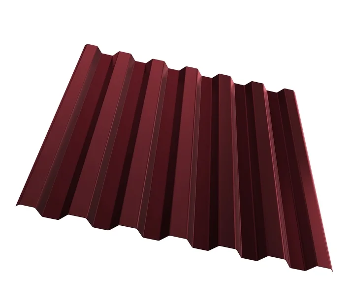 Профнастил ЮджинСтрой С21 с покрытием из полиэстера толщиной 0,5 мм в цвете Ral 3005 красное вино - это надежный и стильный материал для кровли и фасадов.