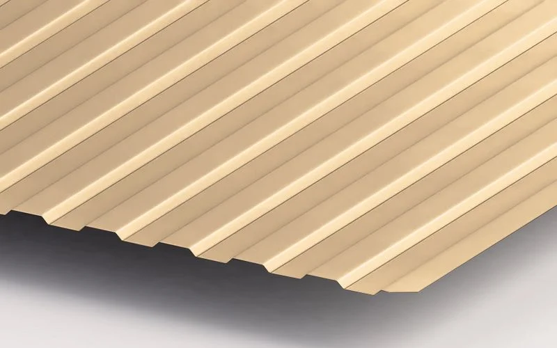 Профнастил ЮджинСтрой С8 с покрытием из полиэстера толщиной 0,7 мм в цвете Ral 1014 слоновая кость - это надежное и качественное покрытие для вашего строительного объекта. Этот профнастил отличается высокой прочностью, устойчивостью к коррозии и влаге, а также долговечностью.