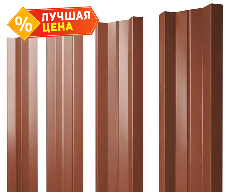Металлический штакетник М-образный А Grand Line 0,5 Velur RAL8004 Терракота