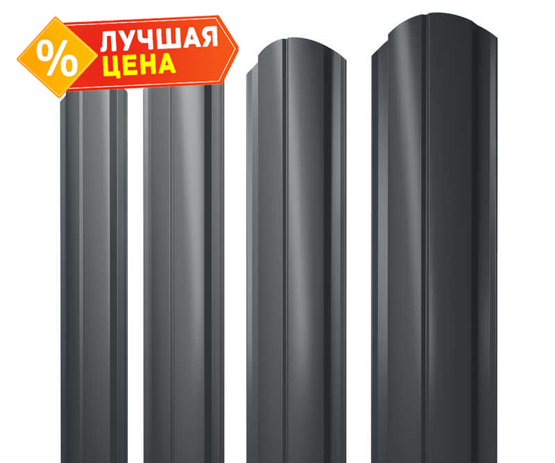 Штакетник Полукруглый Slim фигурный Grand Line 0,5 Satin RAL7016 Антрацитово-Серый