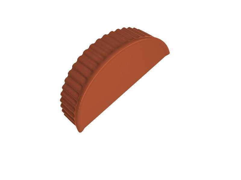 Торцевая заглушка полукруглого конька не имеет особенностей в своей установке: достаточно просто надеть её на конёк и всё.